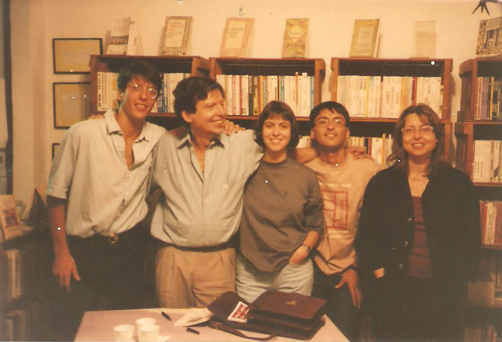 1990 – Na Livraria Capitu - eu, meus filhos e minha irmã. Pela ordem: Alex, eu, Cecilia, Roberto e Dunia.