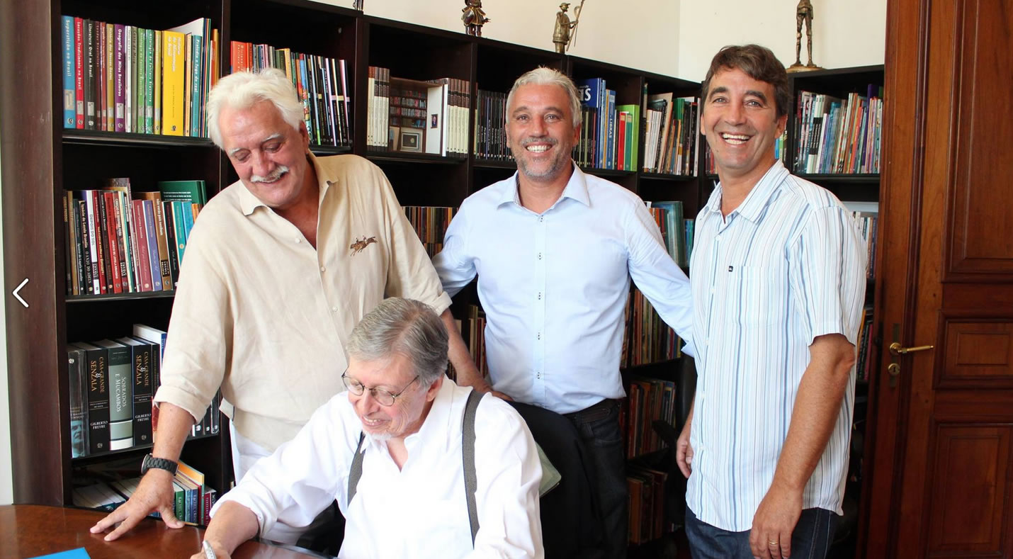 2015 - Diante dos meus editores, Luiz, Jefferson e Richard, assino o contrato do Fantasma da Alameda Santos.