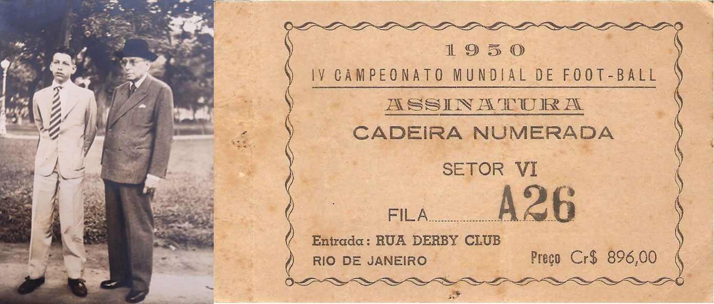 1950 - Eu e meu avô João Marinho (1875-1956) no Rio de Janeiro na véspera da final Brasil X Uruguai que assistimos juntos no Maracanã. Vejam a minha numerada.