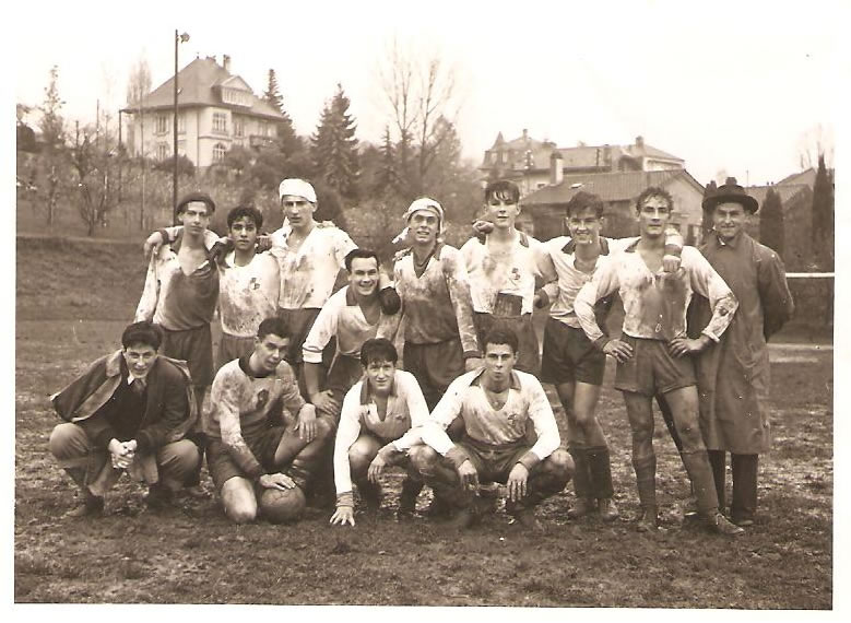 1952 -Lausanne (Suiça) : molhados e cheios de lama mas felizes depois da vitória . Sou o primeiro de pé contando da esquerda.