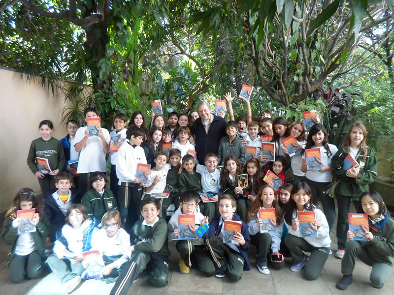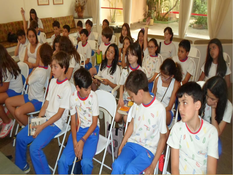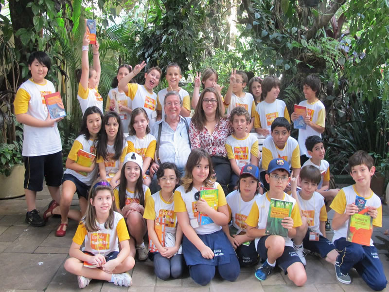 | Encerramento da entrevista: Os alunos da Escola Internacional de Alphavile exibem com orgulho os livros que leram. |