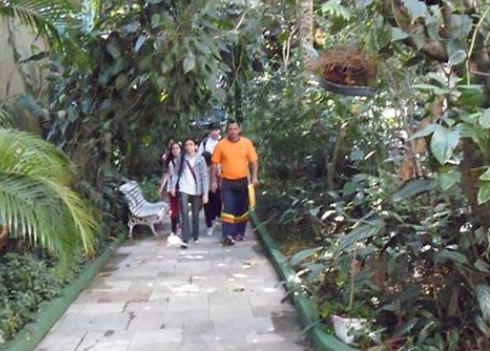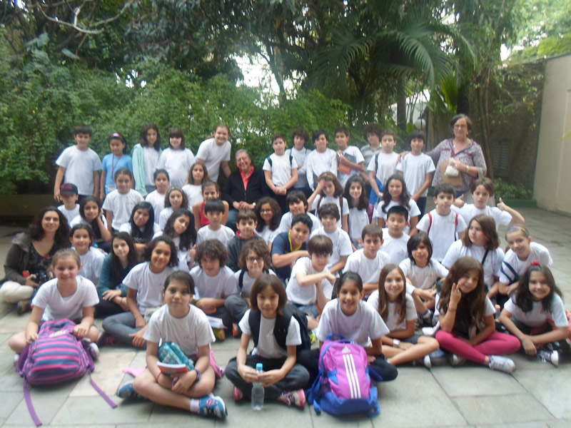 Encerramento da entrevista: os alunos da Escola Itaca se colocam do outro lado do jardim. |