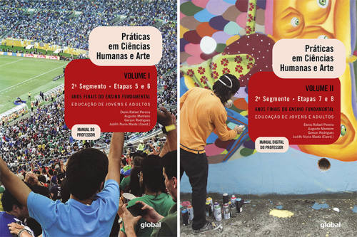 Os volumes 1 e 2 de Práticas em Ciências Humanas e Arte, para as etapas 5 a 8 da EJA, promovem a reflexão sobre sociedades usando fontes consolidadas. Buscam desenvolver leitura crítica, respeito à diversidade e análise de problemas sociais e culturais. A Arte é abordada com pedagogia inclusiva, refletindo a diversidade étnica e cultural.